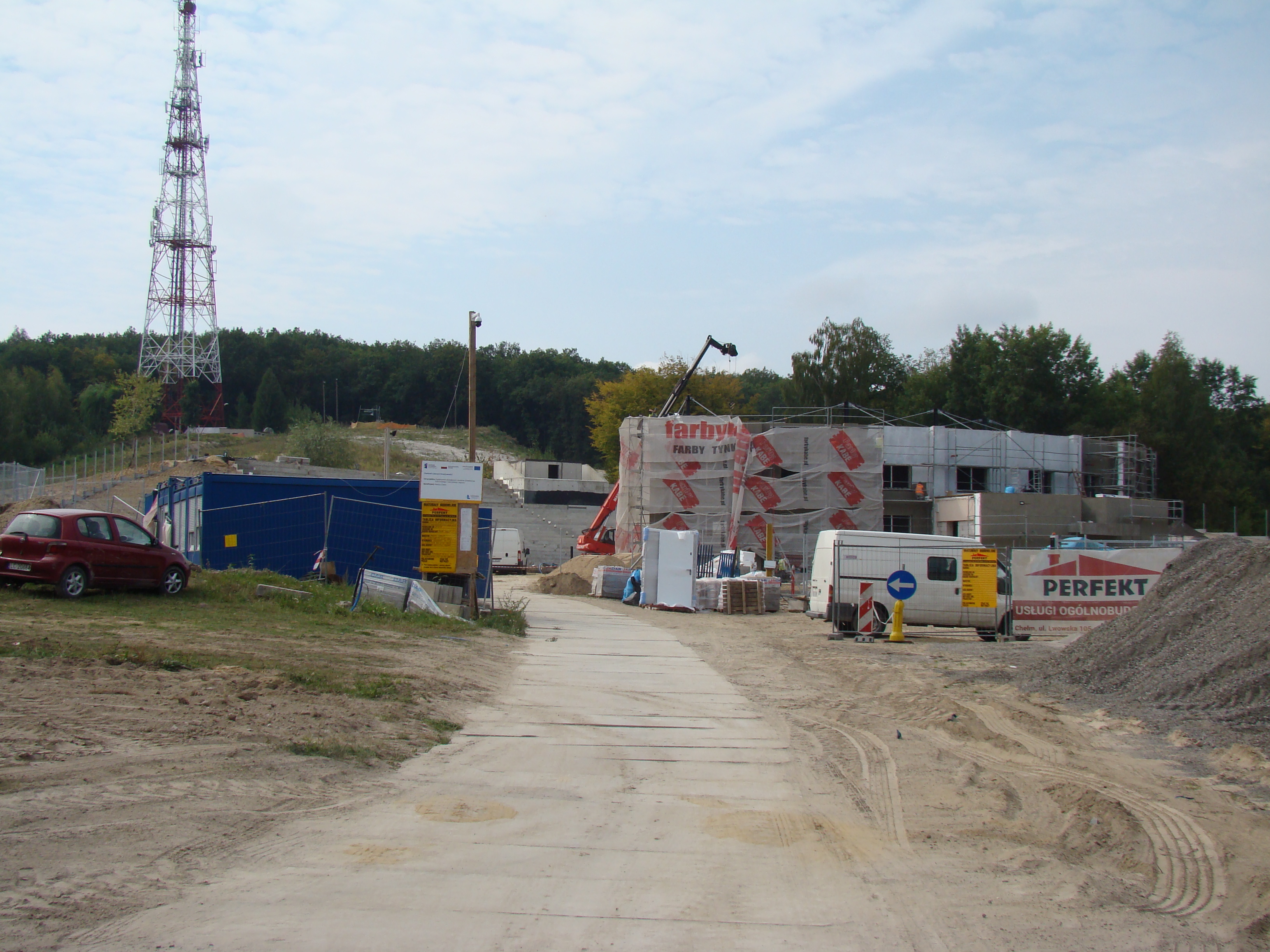 Roboty trwają również wokoło obiektu. Firma „Perfekt” wykona drogi dojazdowe, aleje, parkingi, place zabaw, które otoczone będą bujną zielenią.
